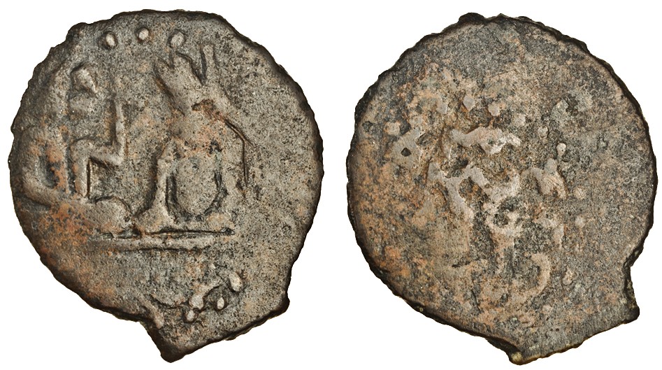 Central Asia, Chach / Kabarna (c.6th - 8th century), AE Drachms (2), figure seated on a throne with second figure to right, rev. tamgha surrounded by legend (SK 2-3-2, one plate coin 45), about fine and good fine, scarce (2)