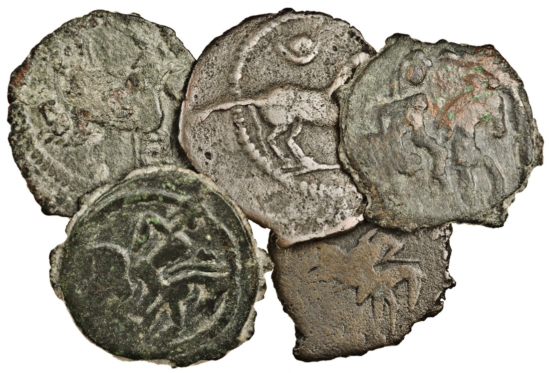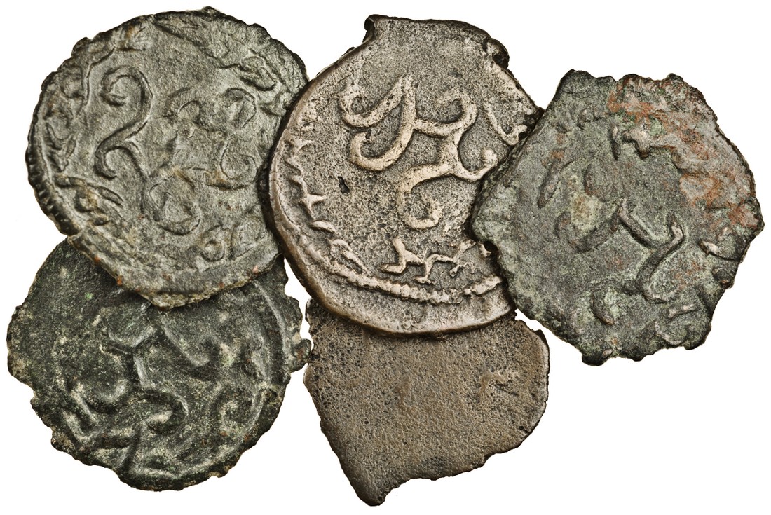 Central Asia, Chach / Kabarna (c.6th - 8th century), AE Drachms (5), horseman riding right (3), horse without rider right (2) rev. tamgha with legend around (SK 2-7-2 (2), 2-7-3, 2-8-1), fine to very fine (5)