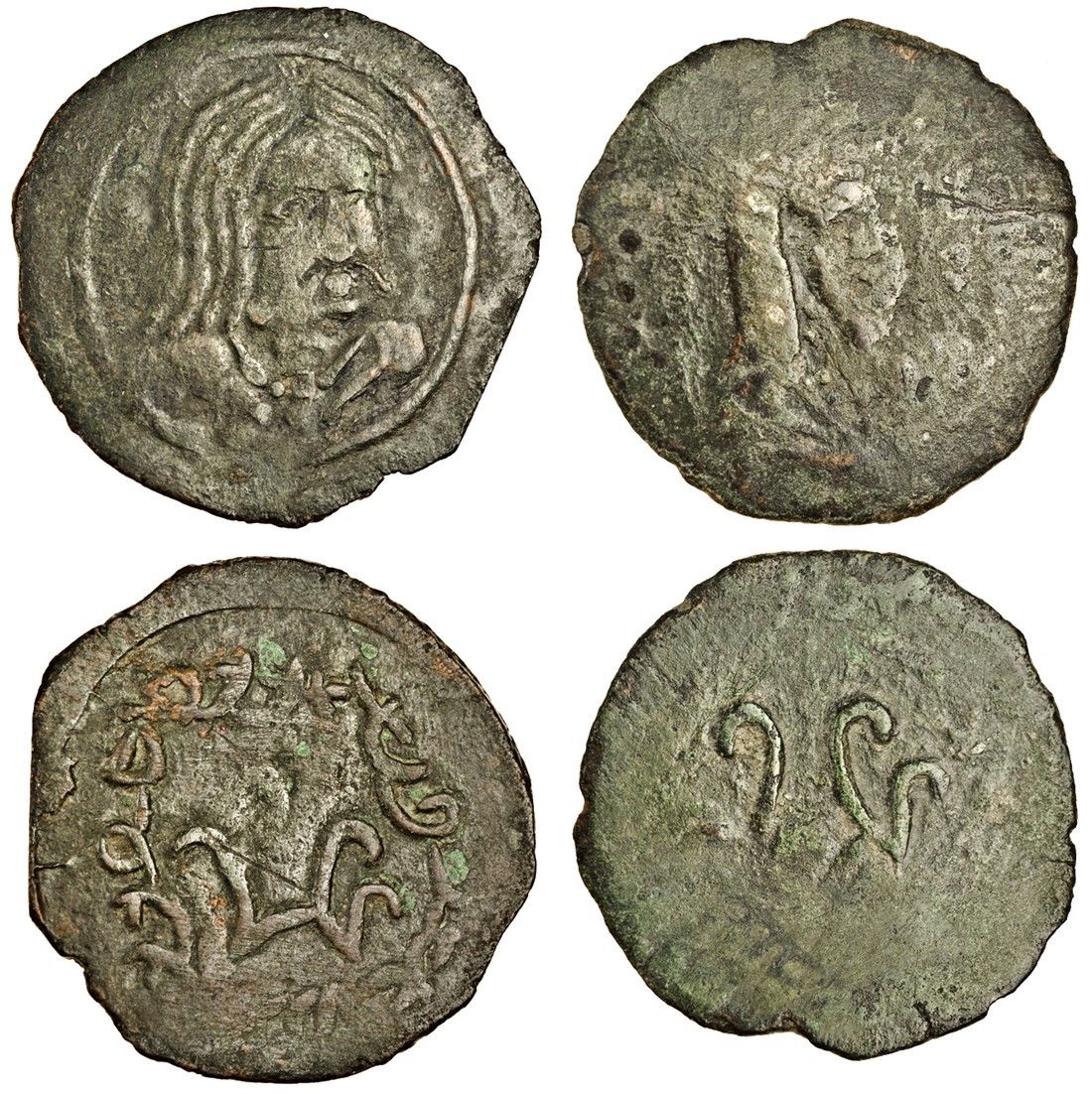 Central Asia, Chach / Kabarna (c.6th - 8th century), AE Drachms (2), bust of mustachioed and diademed man right rev. tamgha with legend around,(SK -), the first good fine, the second fair, both rare (2)