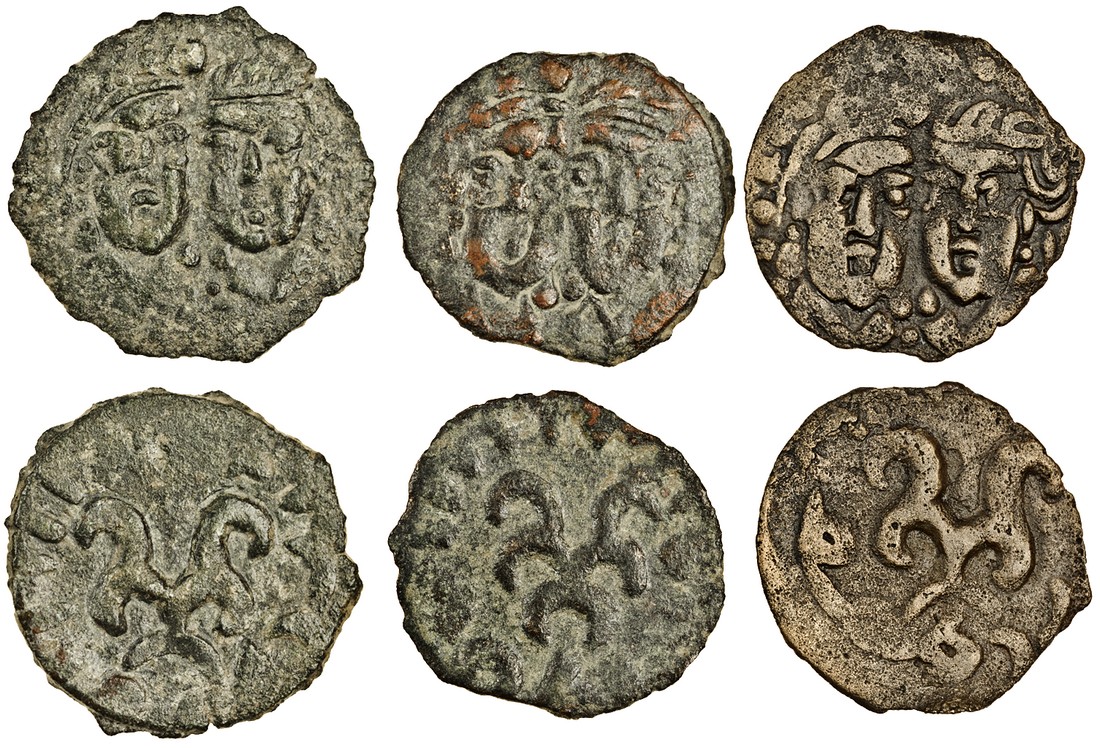 Central Asia, Chach / unknown principality 1 (c.7th -8th century), AE Drachms (3), two facing busts 'royal couple', rev. tamgha surrounded by legend (SK 5-1-1), very fine, exceptional for type (3)