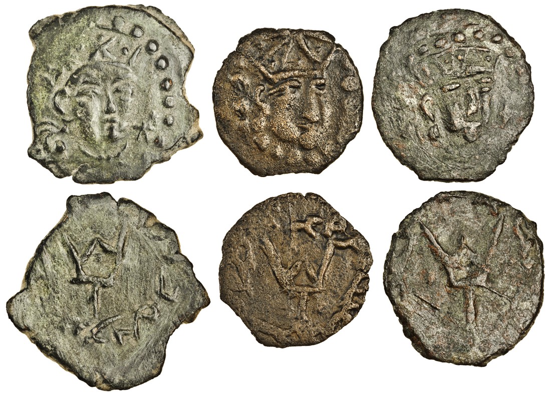 Central Asia, Chach / unknown principality, AE Drachms (3), three-quarter facing bust wearing lattice crown, rev. 'pitchfork' tamgha surrounded by legend (SK 6-3-1 (2, one plate coin 212), 6-3-2 (plate coin 214)), good fine to very fine (3)