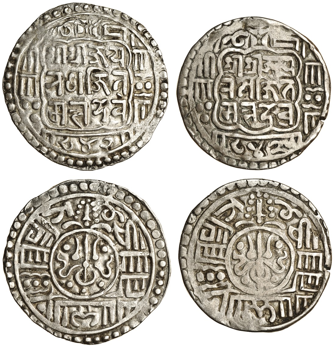 Nepal, Bhatgaon, Ranajit Malla (1722-69), Mohars (2), NS 842 (1722), scalloped square panel containing legend with date below, rev. trident within central circle, garlanded sword above (RGV.564; KM.108), very fine (2)