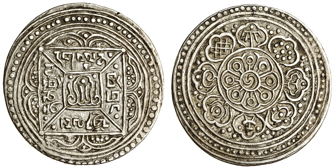 This coin was struck for distribution to monks during the Monlam Festival (Great Prayer Festival) which took place after New Years Day.