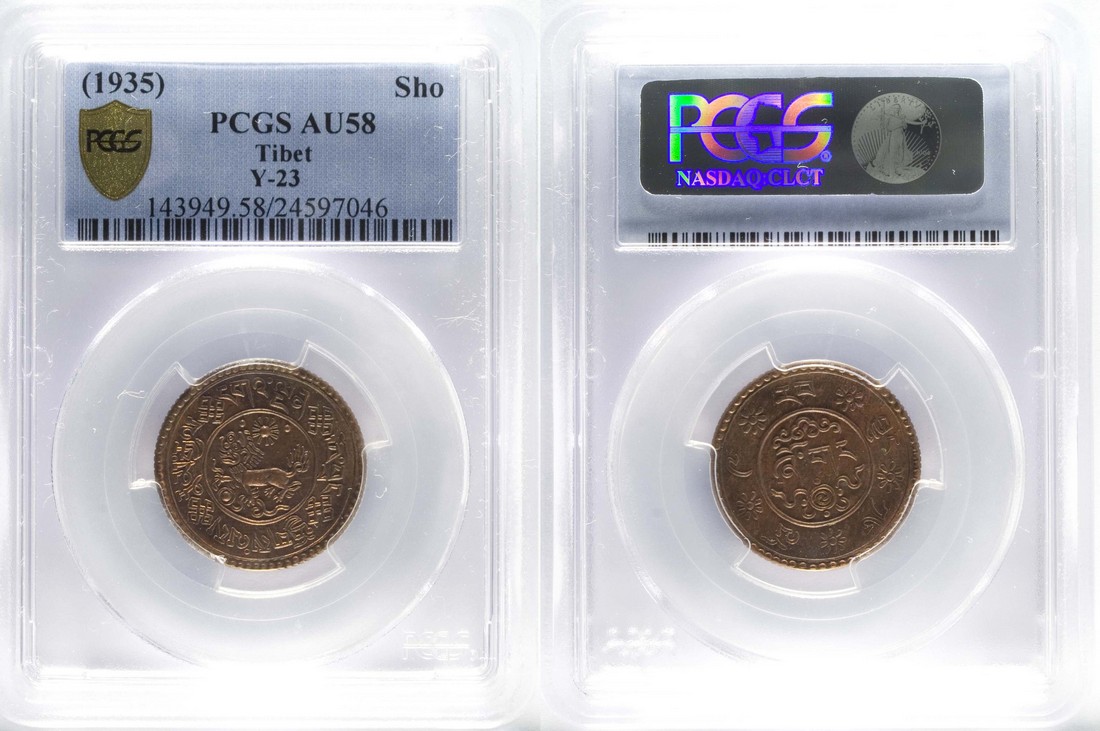 Tibet, copper 1 Sho, 1935, PCGS AU58, silver 3 Srang, (1937)11, PCGS AU58, and Silver rupee, (1939-42), PCGS Genuine. (3)