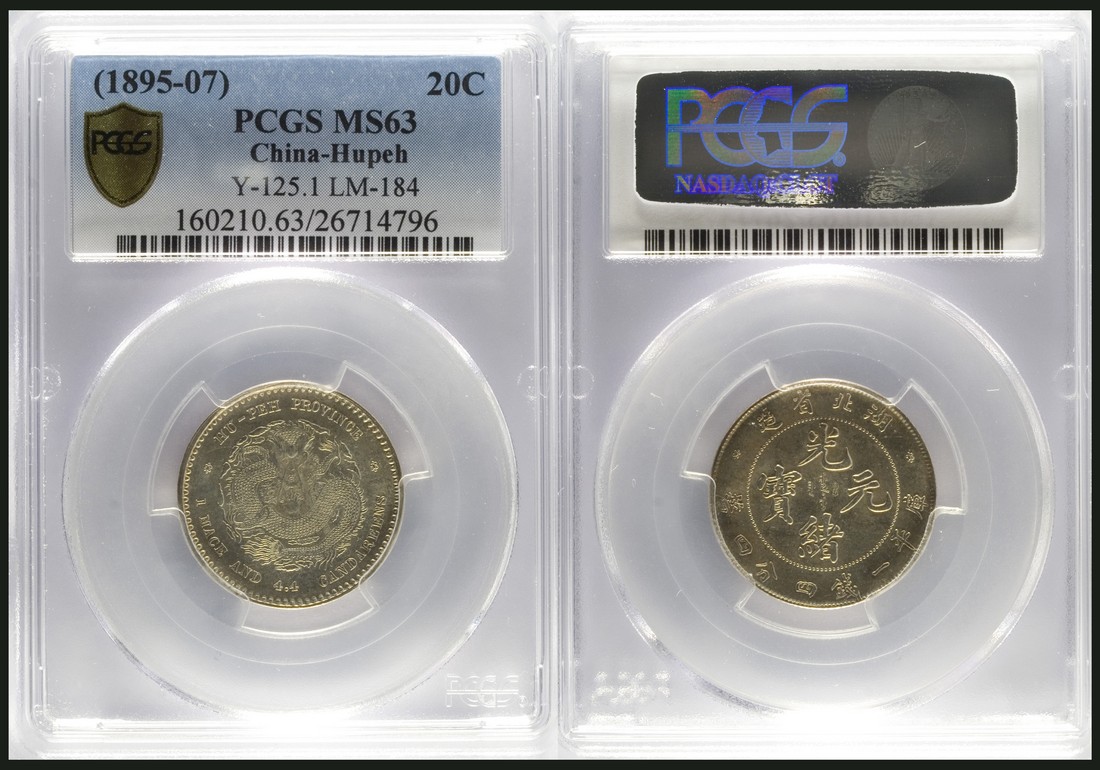 China, Hupeh Province, 20 Cents (1 Mace 4.4 Candareens), 1895-1907, PCGS MS63