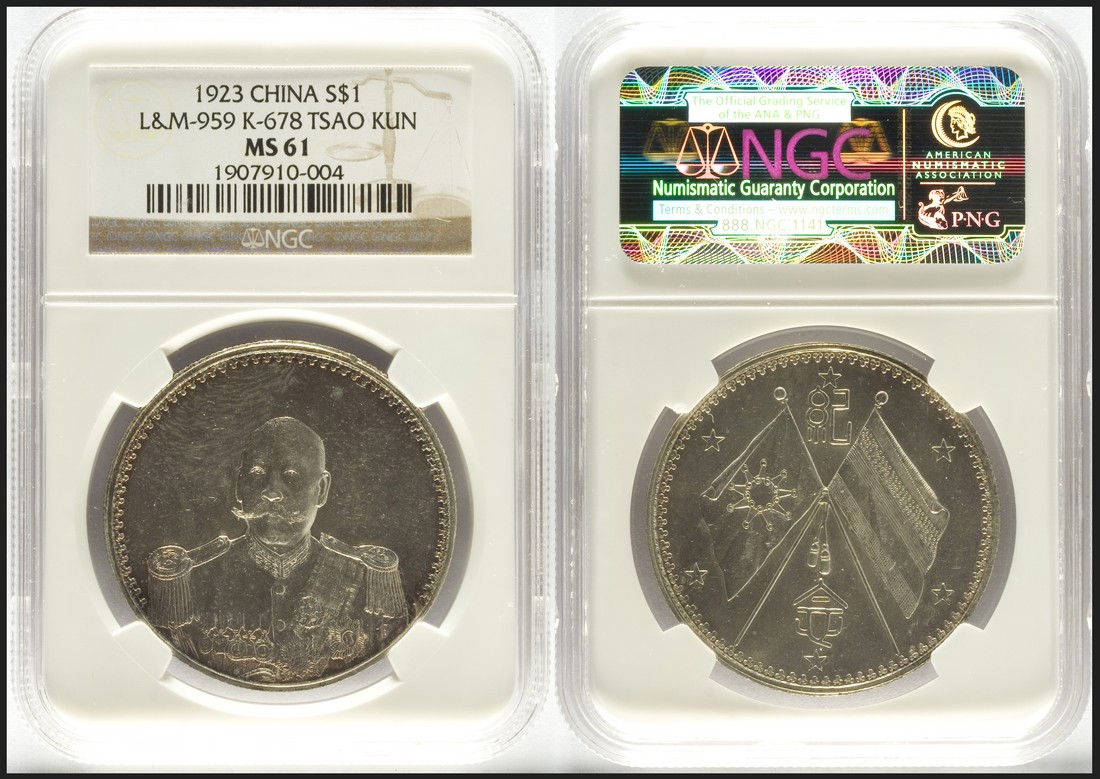 China, Republic, Silver dollar, 1923, Tsao Kun in military uniform, NGC MS61