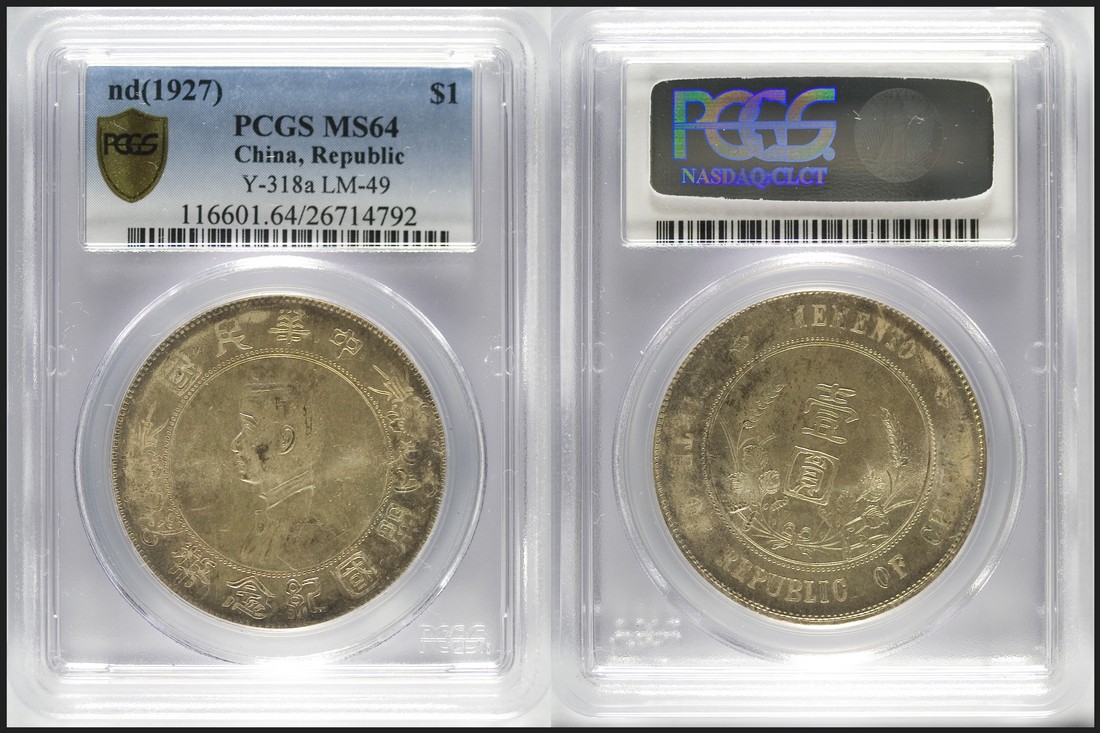 China, Republic, Sun Yat Sen, Silver dollar, 1928, 6-pointed star, PCGS MS64