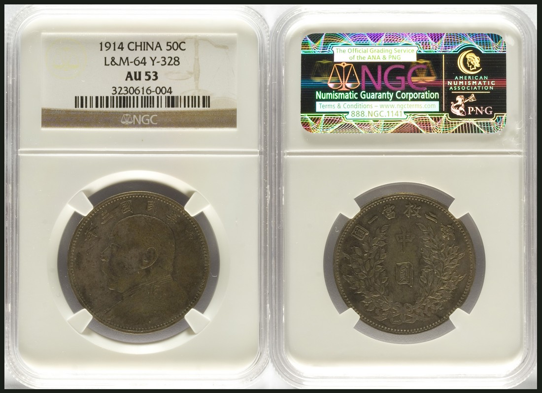 China, Republic, Yuan Shih Kai, Half dollar, 1914, year 3, NGC AU53