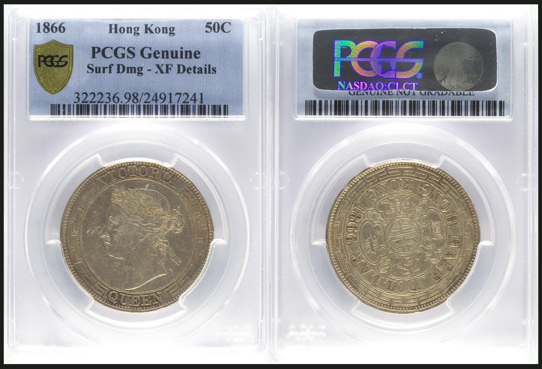 Hong Kong, Victoria (1837-1901), Half dollar, 1866, PCGS XF details