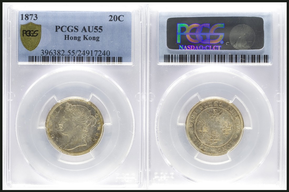 Hong Kong, Victoria, 20 Cents, 1873, PCGS AU55