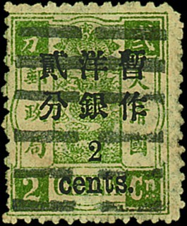 Shasi: Small Figures 2c. on 2ca. cancelled by a neat and upright strike of Shasi 212222 pa-kua; blunt corner perf., otherwise a good example. Photo