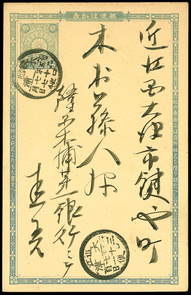 Mokpo: 1902 (27 July) 1½s. postal stationery card to Ohtsu, Japan cancelled by a fine strike of the Mokpo bisected circle with arrival datestamp at side. Fine. Photo