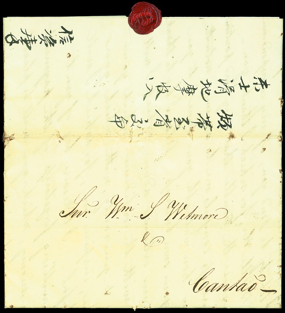 1835 (25 Mar.) Wetmore entire, written in Portuguese with an English translation on the following page, carried privately and bearing three different sets of brush strokes on the reverse; horizontal filing crease. Unusual and interesting. Photo