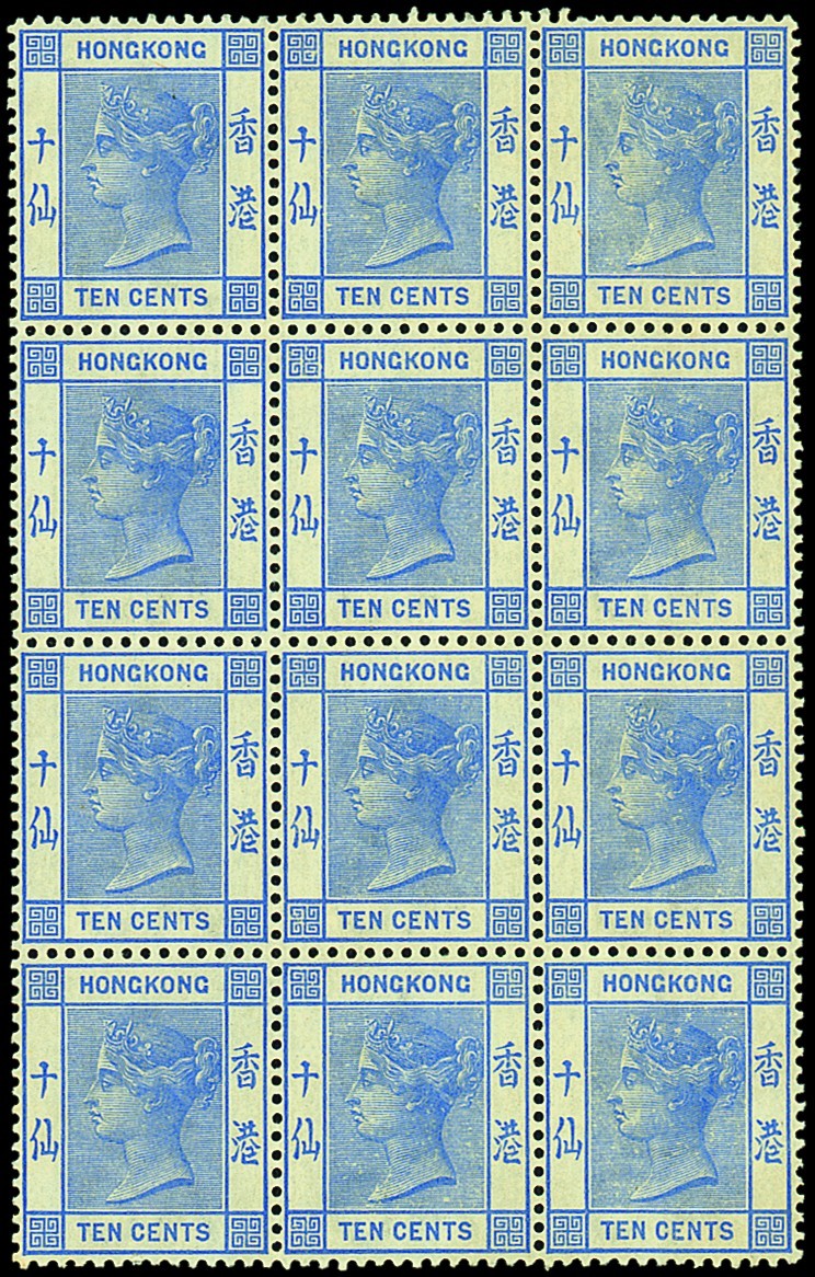 10c. ultramarine in a block of twelve, mint; a good multiple. S.G. 59. Photo