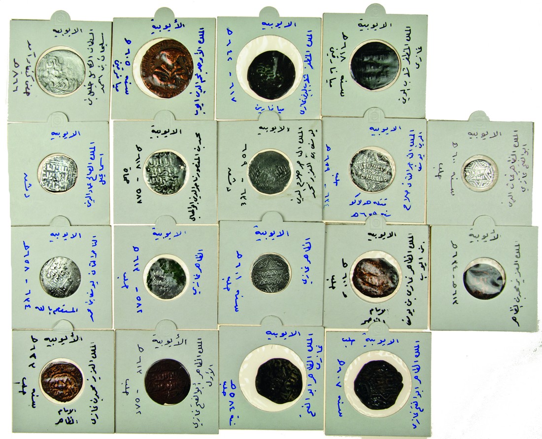 (x) Ayyubid Branches, Aleppo, al-Zahir Ghazi (1186-1216), Dirhams (2), Half-Dirham, six-pointed star type, Haleb, AE Fals (4), Al-'Aziz Muhammad (1216-34), AE Fals (2), al-Nasir Yusuf II (1236-59), Dirham (3), six-pointed star type, square in circle type (2); Damascus, al-Salih Isma'il (1239-45), Dirham, AE Fals, Hamah, al-Mansur Muhammad I (1191-1220), AR Dirham, Hisn Kayfa, al-'Adil Khalaf (1461), Tanka, Jazirah, al-Awhad Ayyub (1199-1210), AE Dirham, facing bust, hexagram reverse, Al-Muzaffar Ghazi (1220-42), AE Fals (2) (A.834.7, 835.3, 841, 842.2, 843.1, 848.1, 860, 867; Balog 604, 605, 856.2, 677), the Half-Dirham and the Hamah Dirham holed, fine to very fine (19)