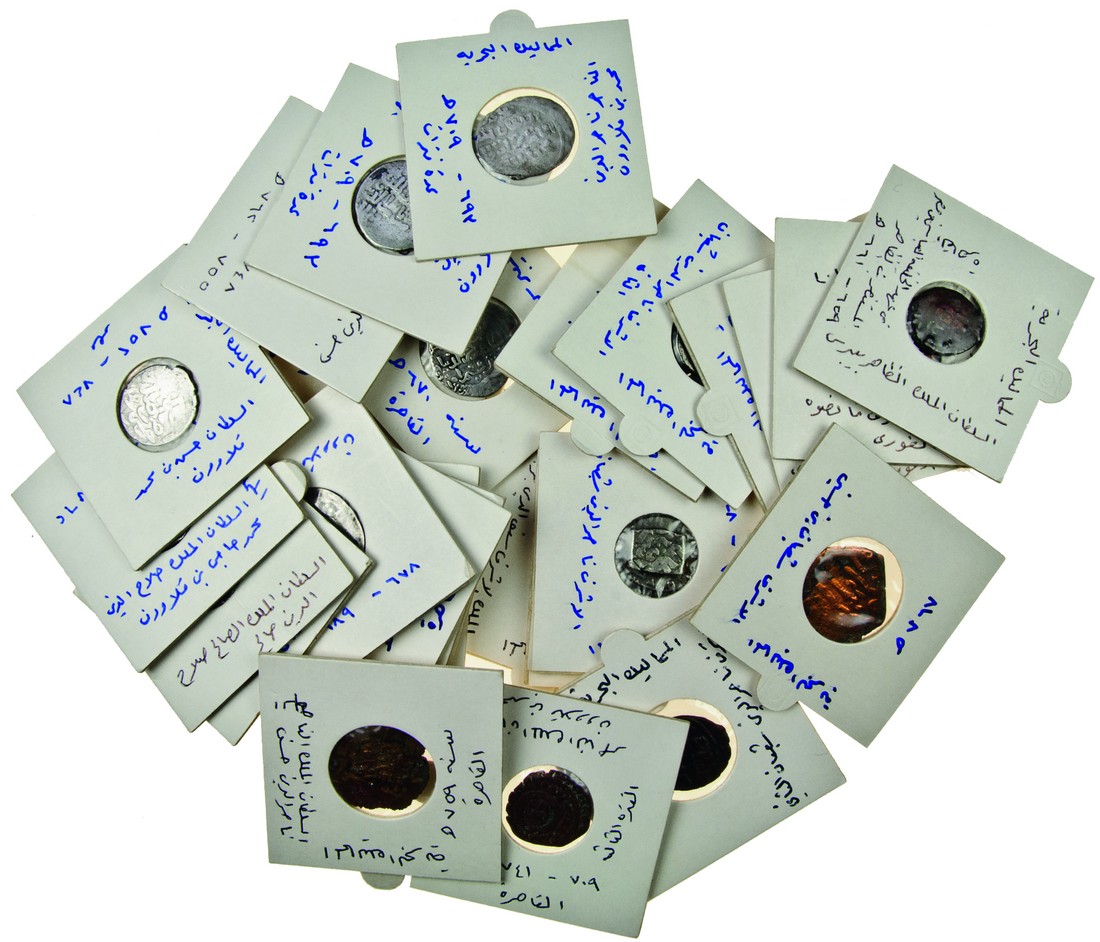 (x) Mamluk (13th-14th century), Dirhams (20), fractional Dirhams (3), including issues of Baybars I (4), al-Adil Salamish (1), al-Mansur Qala'un (2), Muhammad I (3), al-Nasir Hasan (2), al-Salih (1), al-Mansur Muhammad (1), al-Ashraf Sha'ban II (4), Barsbay (4), Qansuh I (1), together with AE Fals (9) of various types, all identified in window envelopes, about fine to good fine, some rare (32)