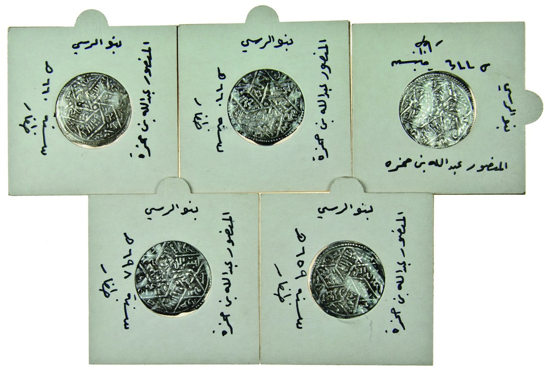 (x) Rassid (second period), al-Mansur 'Abd Allah, posthumous Mansuri Dirhams (5), Zafar, AH648, 659, 660 (2), 664, together with a 1/6-Dirham, Sa'da (A.1083), the 1/6-Dirham broken, very fine or better (6)