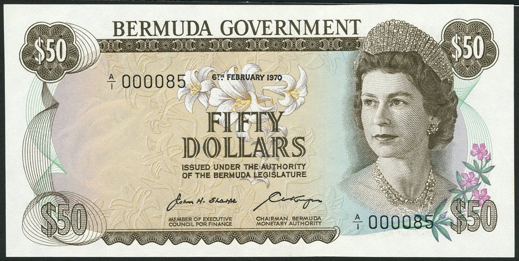 Government of Bermuda, a set of 6 February 1970 series, comprising $1, 5, 10, 20 and $50, all with the serial number A/1 000085,