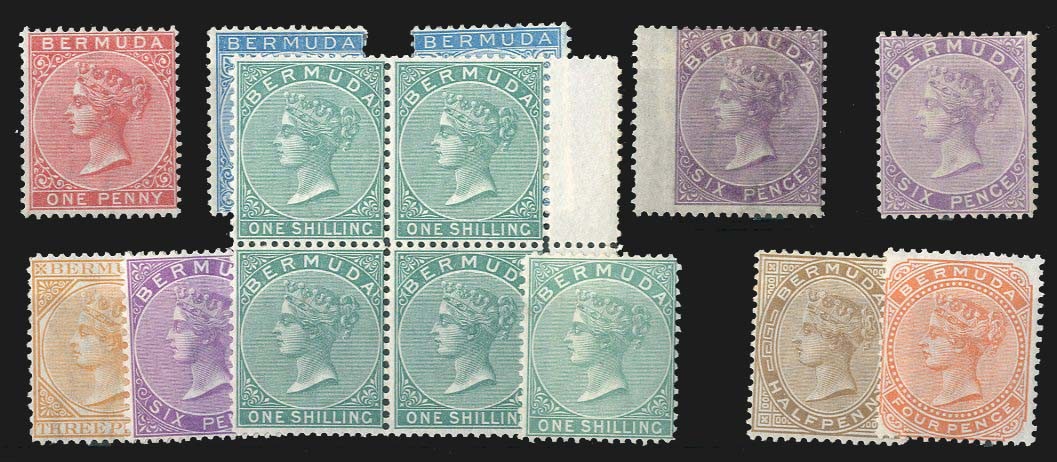 1865-1903 CC perf 14 1d. rose-red (no gum), 2d. (2, one a little gum stained), 6d. dull purple with wing-margin, 6d. dull mauve, perf 14x12½ 3d., 6d. and 1/- (5 including a block of four), and 1880 CC ½d. and 4d., generally fine mint. Cat. £2,300+
