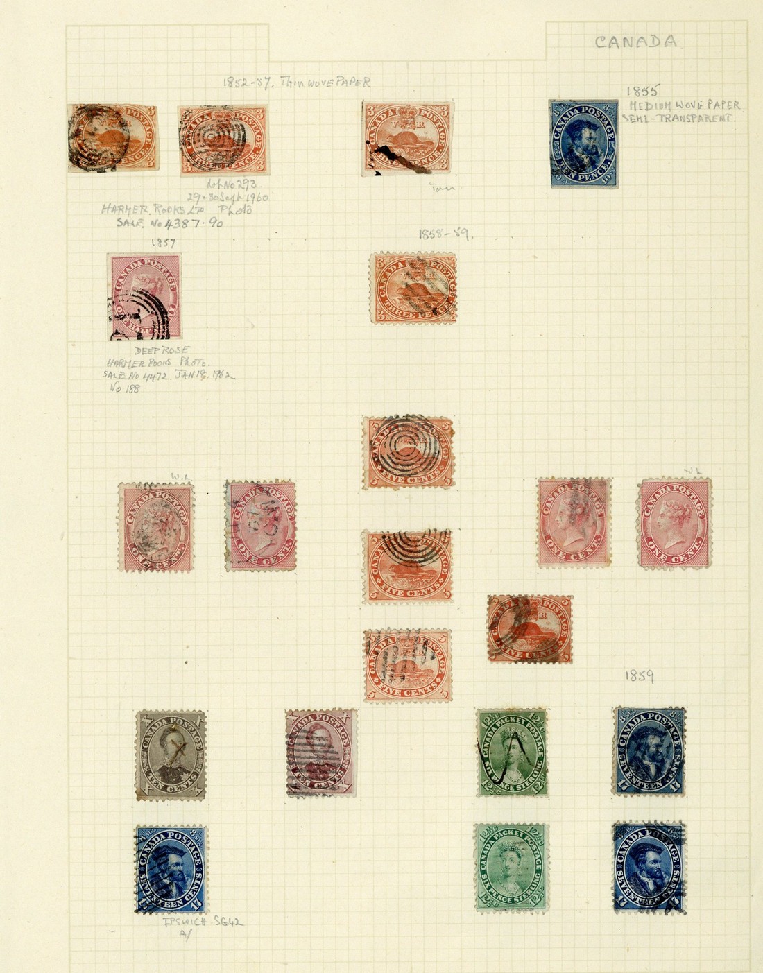 1853-2005 mint and used collection arranged in four volumes and loose, contained in two cartons, including used 1852-57 imperf. ½d., 3d. (3), 10d., 1859 3c. to 17c., 1864 2c., 1868-97 range of Large and Small Queens, 1897 Jubilee $2 (2), $5, 1908 Quebec Tercentenary, 1915 war tax mint 5c. (2), 20c. (2), a range of mainly commercial covers; also year packs/books and a selection of auction catalogues (4) with Blauvelt, Harris and Simmons. Condition variable. An interesting lot well worth closer inspection. (thousands)