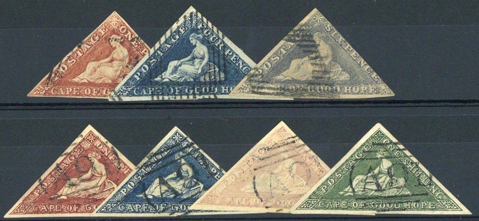 1855-58 1d., 4d., 6d. and 1/- with matching "A91" cancellations, 1d., 4d. and 6d. slate-lilac by Panelli with barred cancellations; both 6d. values defective though an unusual groupF