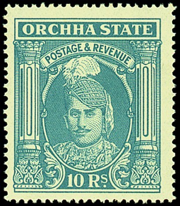 — 10r. turquoise-green, fresh lightly mounted mint. Scarce. S.G. 45, £1,000. Photo