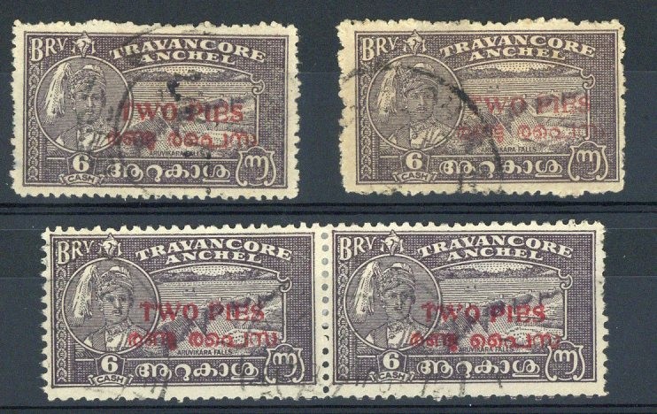 2p. on 6ca. with character error, perf. 12½, perf. 11 in pair with normal and perf. 12, fine used. S.G. 1b, 1dc, 1ed, £460