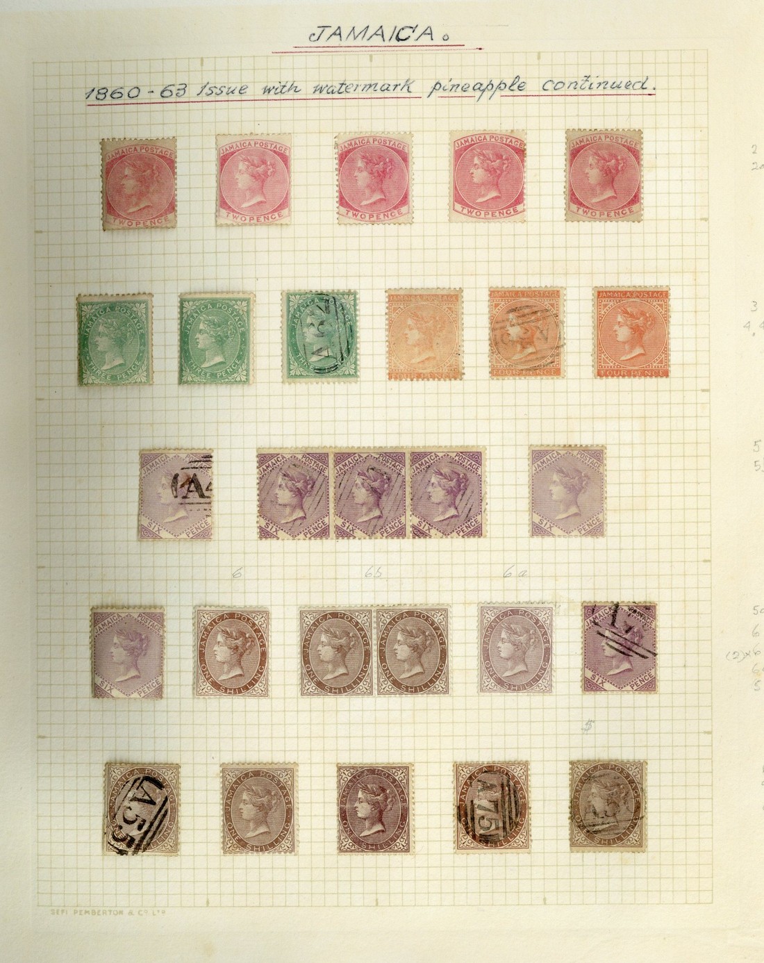 1860-1911 mint and used collection in red album, hundreds including 1860-70 1d. bisect on piece, 2d. (45), 3d. (2), 4d., 6d. (2), 1/- (6) unused or with part original gum, 1870-83 1d., 2d., 4d., perf. 12½ 5/- with part original gum, values to 5/- used, 1883-97 with values to 5/- with part original gum and used, 1/- "$" for "S" variety used, 1903-04 ½d., 1d., 2½d. in pairs containing the "ser.et" variety, 1905-11 set, Postal Fiscals 1865-73 CA 1d. block of four, 1855-74 3d. block of four and imperf. single, 1858 1/- (3 unused and 4 used), 5/- and 10/- used on pieces, Officials 1890-91 overprint 17-17½mm. long ½d. overprint inverted (4), overprint double, overprint double, one sideways, overprint 15-16mm. long ½d. overprint double, etc., mixed condition though many fine