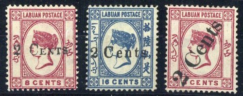 1885 (June) 2c. on 8c. with watermark reversed, (July) 2c. on 16c. and (July) 2c. on 12c. with watermark reversed, unused with large part original gum; the first with a small thin, otherwise fine. S.G. 23, 25, 26, £410