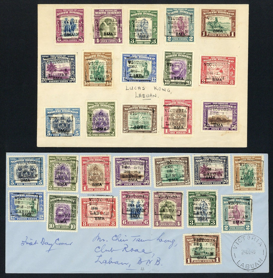 1948 (24 Dec.) locally addressed envelopes (2) both bearing North Borneo 1945 BMA 1c. to $5 set of fifteen, all tied by Victoria Type HS1 handstamp