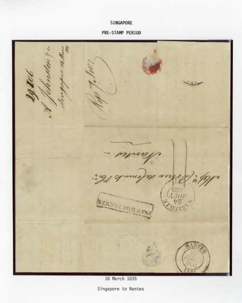 1835-1948 predominantly used collection pertaining to Singapore including India used in Singapore with 1854 1a. (4) and 2a. (2), 1855 blue glazed paper 4a. and 8a. pair, 1855-65 1a. (2), 2a. (3), 4a. and 8a., and 1860 8p., all clearly cancelled "B/172", 1867 (Sept.) on India 1½c. on ½a. to 32c. on 2a., 1867-72 2c. to 96c. plus additional perf 12½ 96c., 1879 (May) 5c. on 8c. and 7c. on 32c., 1880 (Mar.) and (Apr.) 10c. surcharges, 1880 10c. on 30c., 188 (Jan.) 5c. on 4c., 1882 CC 5c. and 10c., 1883 (June) 2c. on 4c., 1884 (Feb.-Aug.) 4c. in red on 5c. and 8c. on 12c. (both), 1884 (Aug.) 2c. on 5c. (all three), 1892-99 1c. to $5, 1902-03 CA 1c. to $5 plus $100 fiscally used, 1904-10 MCA 1c. to $5 plus $25 and $100 fiscally used, 1906-07 1c. to $1, 1906-12 1c. to $5 plus $25 and $500 fiscally used, 1912-23 1c. to $5 with some shades plus $500 fiscally used, 1921-33 1c. to $25 (2), 1922 Exhibition, 1937-37 1c. to $5, various Japanese Occupation issues and BMA issues including Revenue $100. Condition a little mixed in places though many fine and well worth careful examination