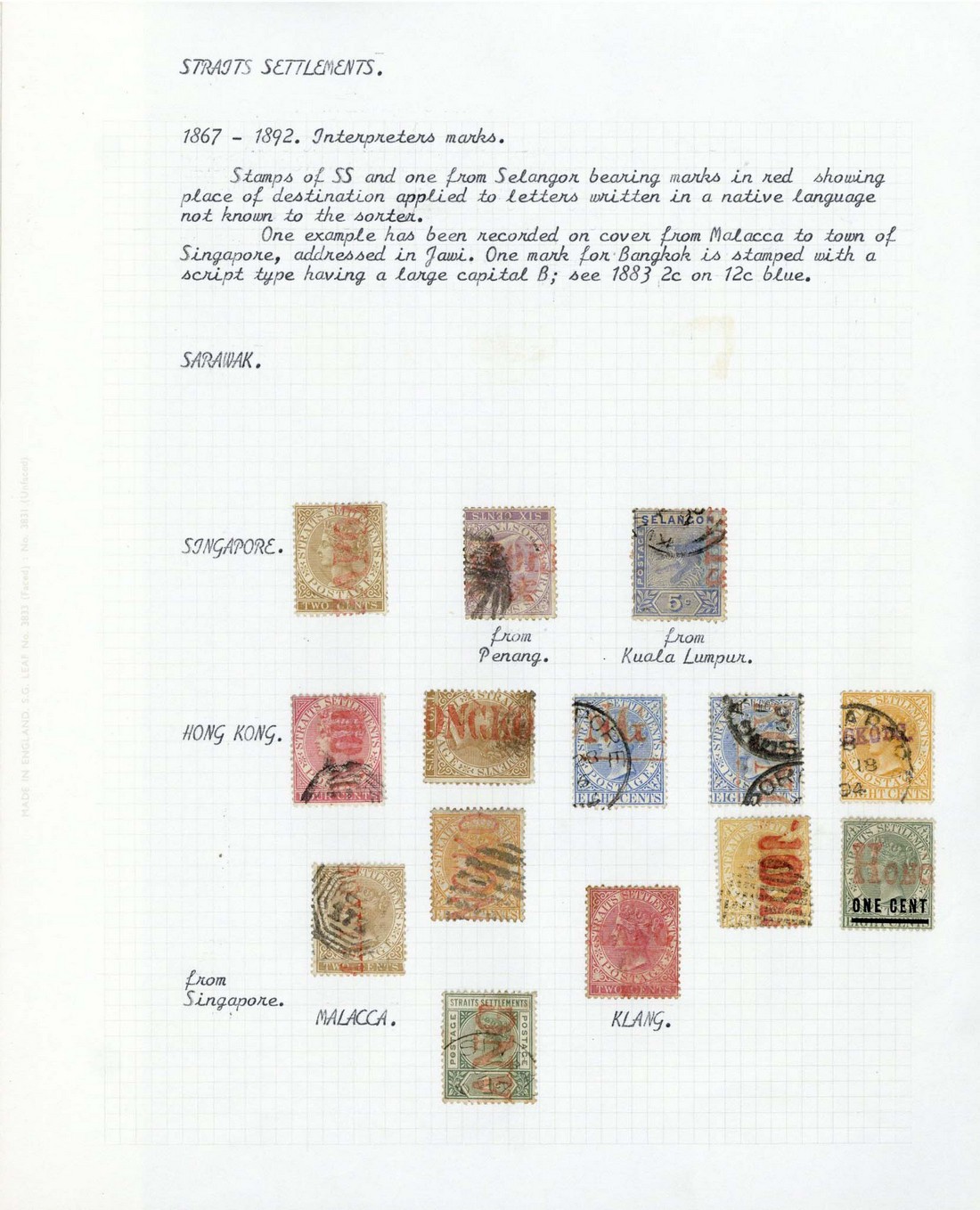 1867-92 selection of fourteen with various red Interpreters handstamps, including Singapore, Hong Kong, Klang, etc., good to fine