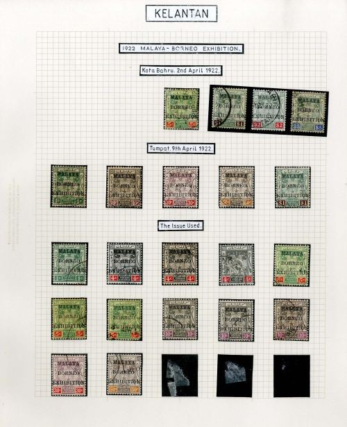 1922 Exhibition used collection, comprising 1c. (2), 4c. (3), 5c. (4), 10c. (3), 30c. (2), 50c. (2), $1 (2), $2 and $5, cancellations with Kota Bahru and Tumpat, etc., chiefly good to fine. S.G. 30-38, £2,010