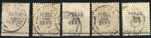 1891 with bar through original value, 1c. on 6c. lilac, the five types, good to fine used. S.G. 43-47, £592