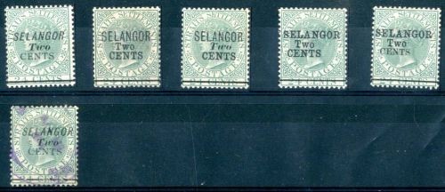 1891 on Straits Settlements, 2c. on 24c., the five types, part original gum, fine and fresh, and surcharge type 35 used (thinned); 1900 (Oct.) "Three/cents." on 50c. green and black block of six (2x3), the lower right stamp showing variety antique "t" in "cents."; the top left stamp with tiny thin at top, otherwise fresh and fine mint, a used single with antique "t" in "cents."; also Parcel Post labels from Batu Road, Bukit Bintang (2), Kuala Lumpur (3), Petaling Jaya (4), Sentul and one other, various types, good to fine for these