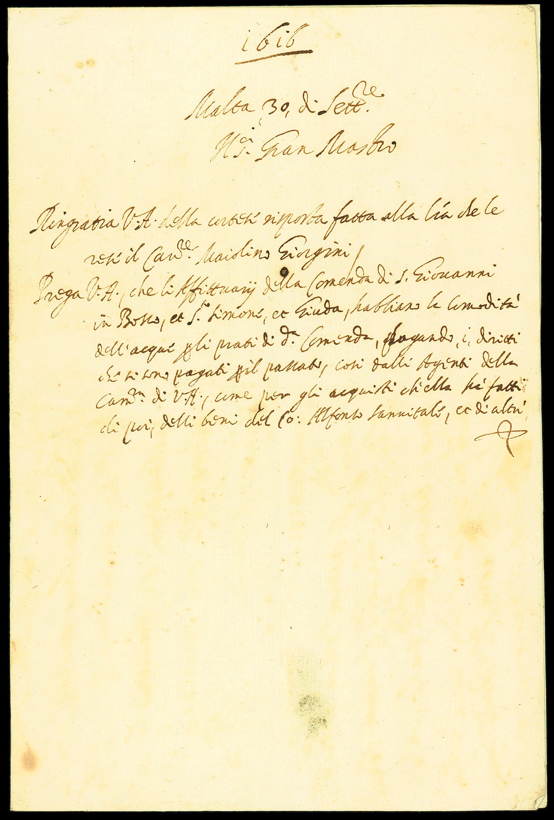 1616 letter from Alof de Wignacourt (French) to the Duke of Palma and signed on his behalf. Photo