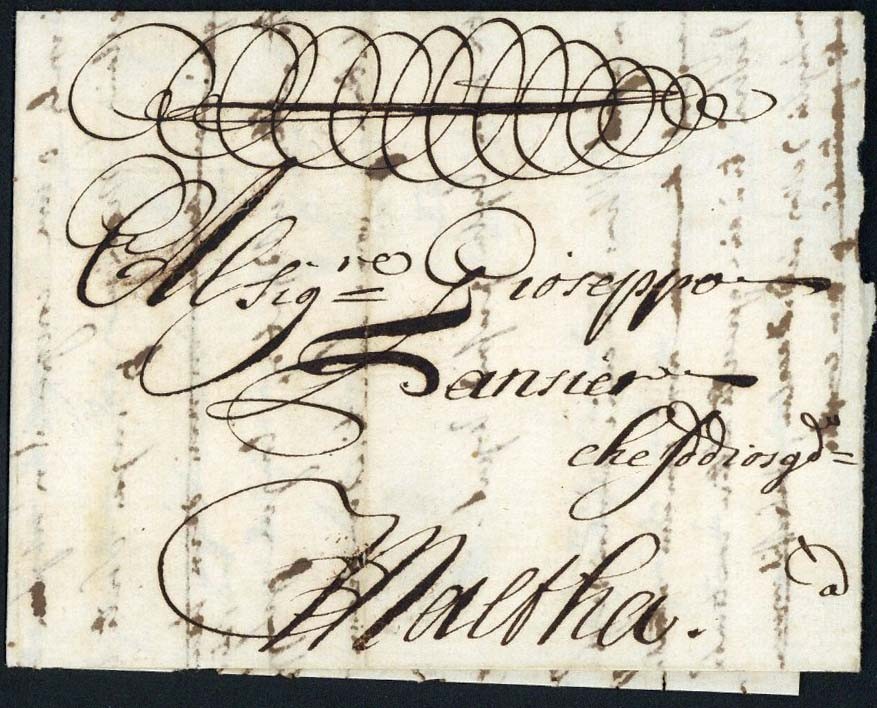 1690 entire from Marseilles to Malta, no markings; some slight ink-etching on reverse