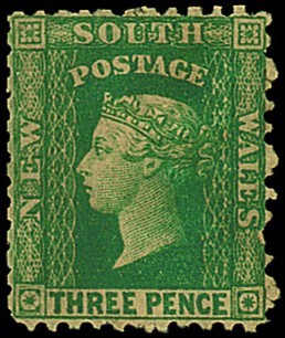 — 3d. blue-green, unused with small part original brown gum, perfs slightly trimmed at left, otherwise fine. S.G. 140, £800. Photo