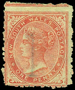 1862-65 watermark single-lined "1", surfaced paper 1d. dull red, unused without gum, centred to lower left, fine. One of three examples recorded by Hutson (see pages 54-55 of his book). Very rare. Photo