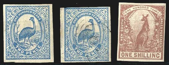 — 2d. Emu (2), unused with small part original gum and lightly cancelled, and 1/- unused with small part original gum, all imperforate, fine