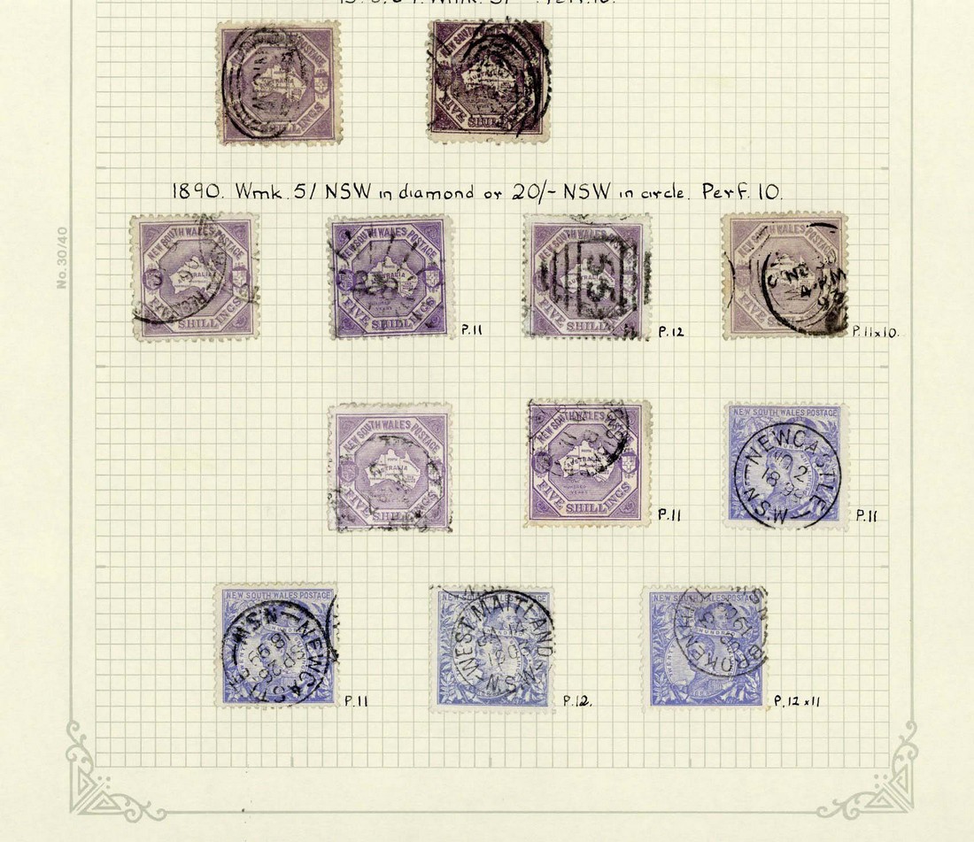1889 5/- (2) and 1890 5/- (6) and 20/- (4), various perfs. and shades, fine used. Cat. £780+