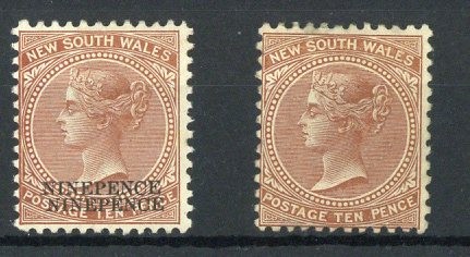 — 9d. on 10d. dull brown, varieties surcharge double and surcharge albino, fine mint. S.G. 309a, 309b; £550