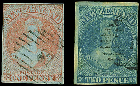 1855-58 blue paper, 1d. red with margins nearly all round, neatly cancelled "18", thin though of good appearance, and 2d. blue with clear to large margins, partially loss of blueing. S.G. 4, 5, £2,300. Photo for 1d.