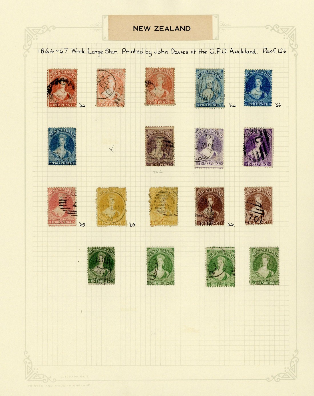 1d. (3), 2d. (3), 3d. (3, one apparently the brown-lilac printing, thinned), 4d. rose, 4d. yellow (2), 6d. (2) and 1/- (4, one deep green), shades, variously cancelled; a couple of faults though of generally fine appearance