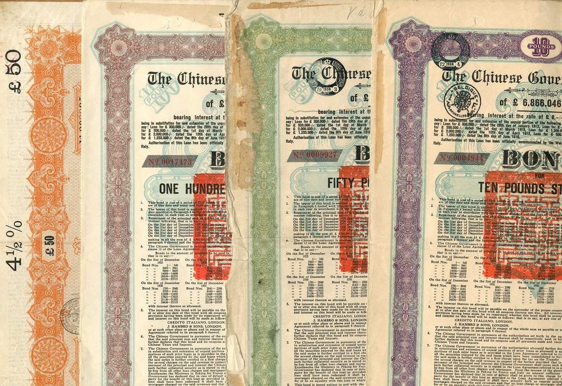 1898 4½% Gold Loan, bond for £50, issued by the Deutsch-Asiatische Bank; together with 1925 'Skoda' Loan, bonds for £10, £50 and £100, all with coupons, the first fine t very fine, the others all with condition problems, fine and better. (4)