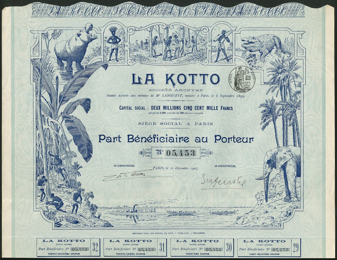 Canada: A group of 9 mining certificates, comprising Nip and Tuck Gold Hydraulic Mining Co. Ltd., Wild Horse Creek, B.C., $5 shares, 189[6] (2 examples), ornate border, embossed gold seal at bottom left; Cariboo Consolidated Mining & Milling Co. Ltd., $1 shares, 1[900], mine shaft, steam train and ship at top, black; Boston Creek Mining Co. Ltd., $1 shares, [1917], ornate border, orange; Argonaut Consolidated Mines Ltd., $1 shares, [1927], miners at top, brown and black; Laval-Quebec Mines Ltd., $1 shares, [1926], miners at top, blue; Ribble Mines Ltd., $1 shares, 19[22], green; Buffalo Mines Ltd., $1 shares, [1908], brown, and Lorrain Trout Lake Mines Ltd., $1 shares, 19[23], brown, all issued to the Earl of Norbury, all with light folds, but very fine throughout. (9)