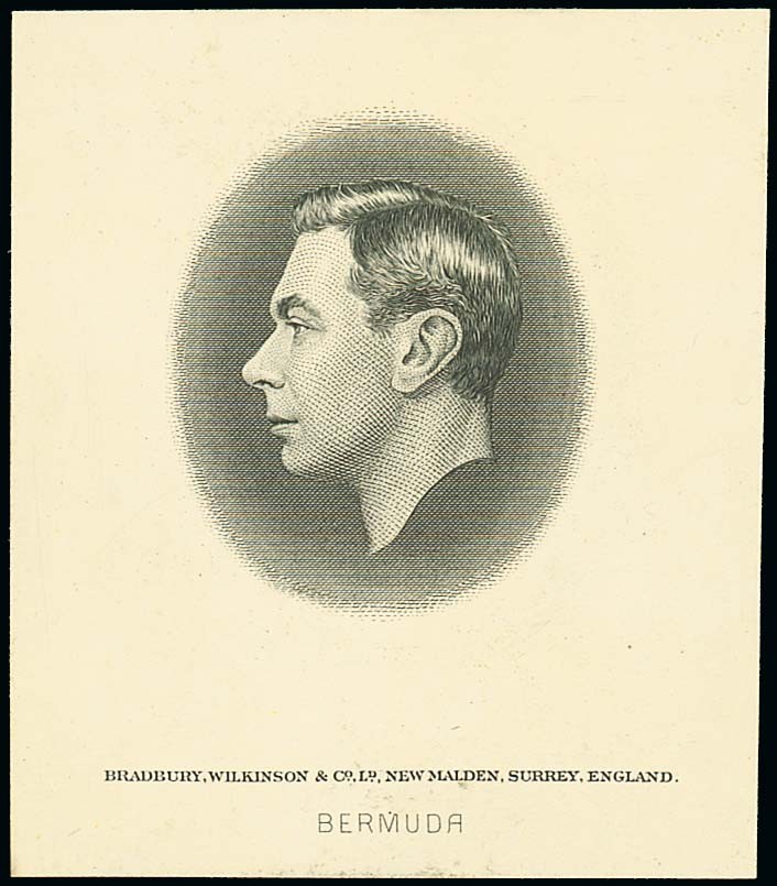 King George VI head within unframed oval (58mm x 67mm), with "bermuda" below, fine. Photo