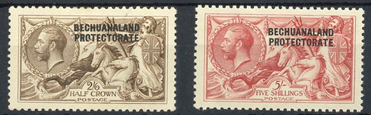 Bradbury, Wilkinson 2/6d. and 5/-, large part original gum; 2/6d. with gum a fraction yellow. S.G. 88, 89, £200