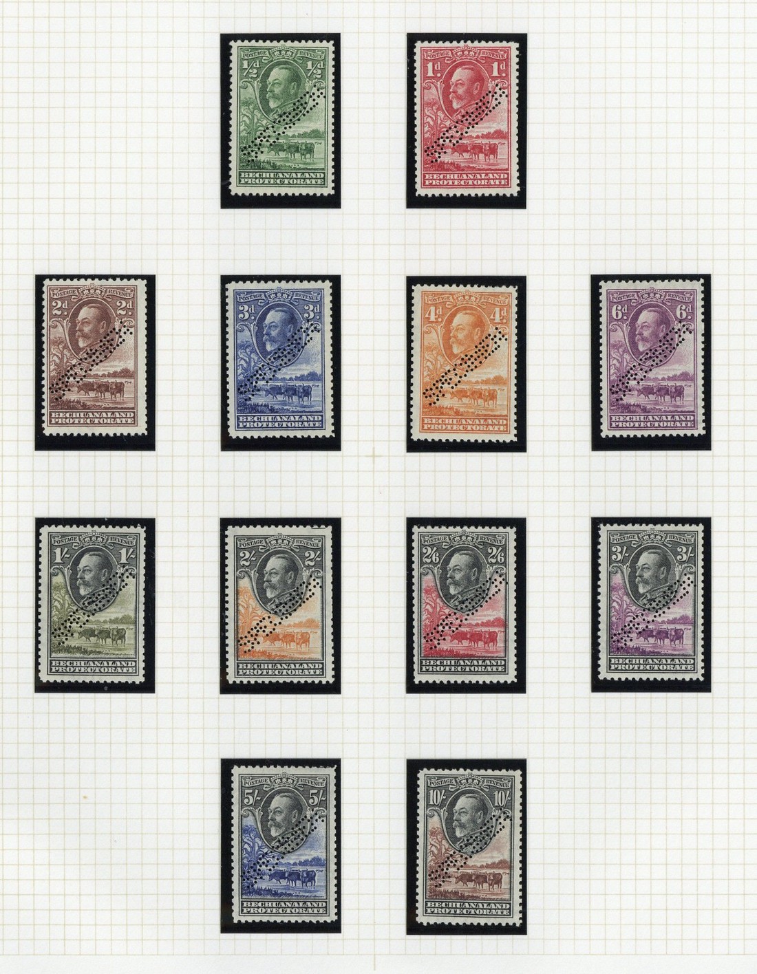 ½d. to 10/- set of twelve perforated "specimen", mint; gum a little toned on some, fine appearance. S.G. 99-110, £400