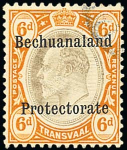 1910 6d. black and brown-orange, small part c.d.s. at upper right corner. S.G. F1, £375. Photo